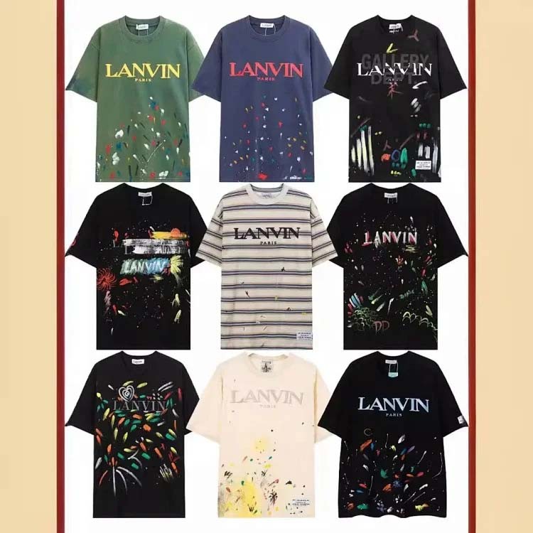 Lanvin European and American classic embroidery print ink splash men's short-sleeved T-shirt-1880